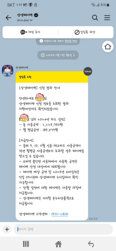 부랴부랴 상생페이백 신청했지만 그 동료처럼 떨어질수도 있어서 기대없이 지내고 있었습니다.